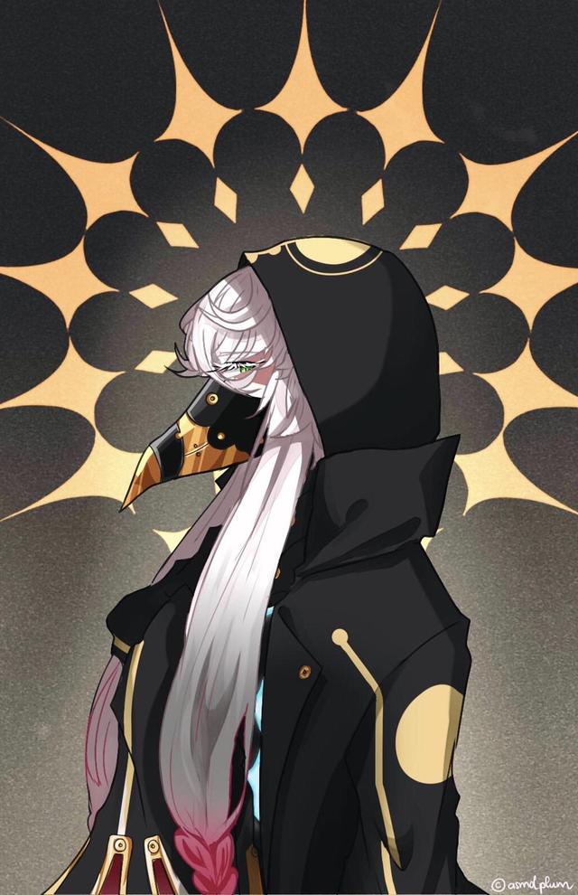 ⑥醫神的初始階段和靈基一立繪分別帶了兩種防毒面具,據說初始版那種鳥嘴面具的發明時間比後者出現的時間還要晚。