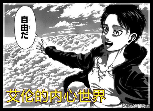 ?第一,本話的漫畫作者諫山創開始將艾倫的內心進行了一番描繪,真實的世界與艾倫自己內心的世界進行對比,將艾倫心態展示的一覽無余。