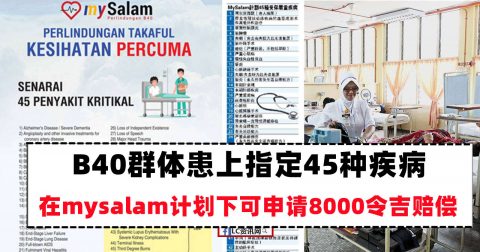 B40群体患上指定45种疾病,可向mysalam 申请8000令吉赔偿