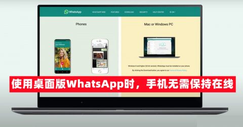 使用桌面版WhatsApp时,手机无需保持在线