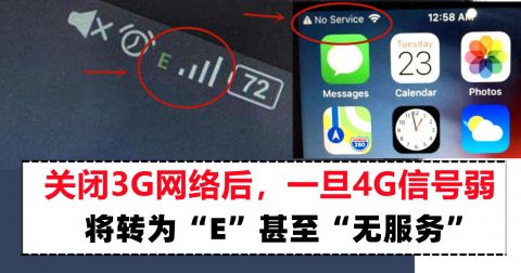 关闭3G网络后,当4G信号不好时直接转为E甚至无服务