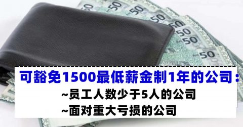 少于5人或面对重大亏损的公司,可豁免1500令吉最低薪金制1年