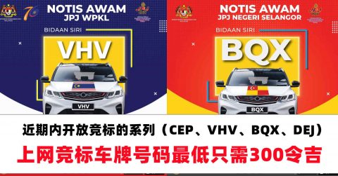 近期内开放竞标的车牌系列(CEP、VHV、BQX、DEJ)