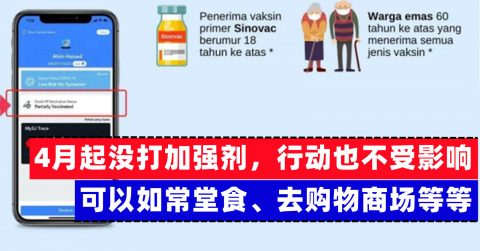 4月起没打加强剂也不受影响,仍然可继续堂食和去购物中心