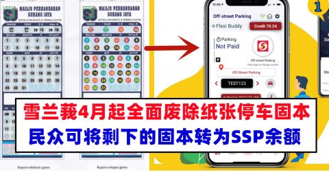 雪兰莪4月起全面停用停车固本,用户可将剩下的固本转为电子余额