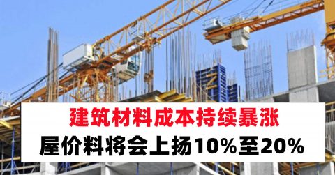 建筑材料成本持续暴涨,屋价料将会上扬10%至20%。