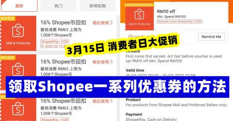领取Shopee 3月15日的优惠券