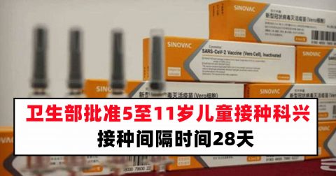 卫生部批准5岁至11岁儿童接种科兴疫苗