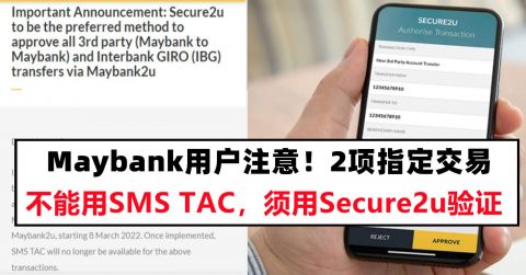 3月8日起Maybank的指定2项转账交易须使用Secure2u来授权