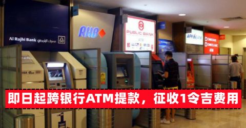 即日起跨银行提款,将征收1令吉费用