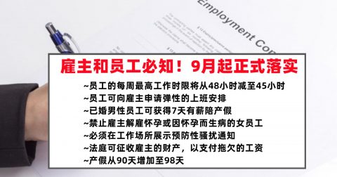 雇佣法令修正案9月生效,员工每周工作最多45小时