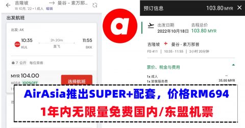 AirAsia推出SUPER+,一年内免费无限量国内和东盟航班机位