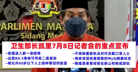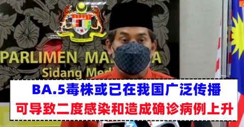 卫生部长提醒BA.5毒株可导致二度感染,以及造成确诊病例上升