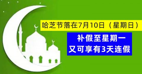 哈芝节落在7月10日星期日,又可享有3天长周末连假