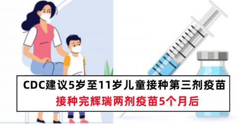 CDC建议5岁至11岁儿童接种第三剂辉瑞疫苗