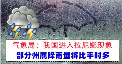 我国本月起迈入拉尼娜现象,部分州属降雨量多至10月