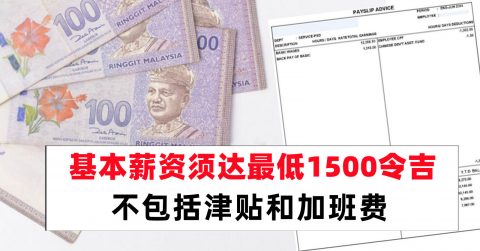 最低薪金1500是基本薪资,不包括津贴和加班费
