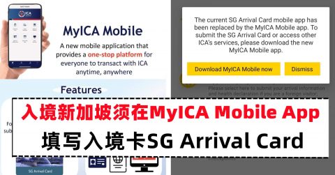 入境新加坡须填写电子白卡, MyICA Mobile App取代SG Arrival App