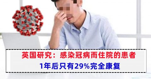 英国研究:感染冠病患者出院1年后,只有29%完全康复