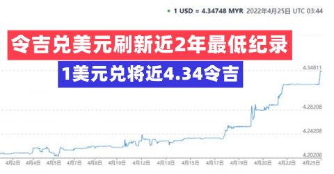 美元持续走高!1美元兑4.34令吉