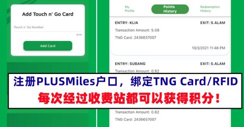 将TNG Card 或TNG RFID Tag绑定PLUSMiles户口,每次使用大道都可获得积分