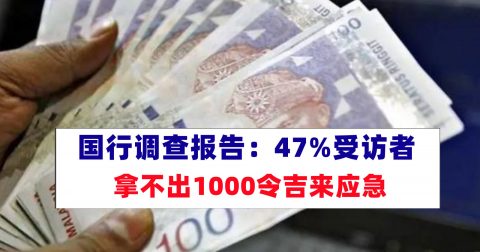 国家银行调查报告:47%受访者无能力取出1000令吉来应急