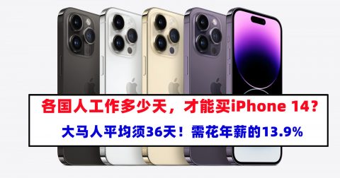 各国人工作多少天,才能购买一部iPhone 14?大马人平均须36天