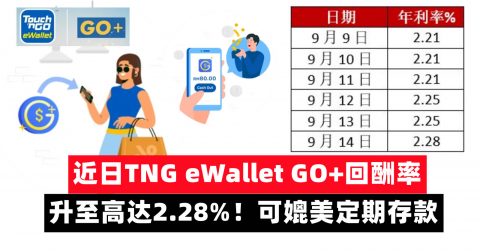 近日TNG eWallet GO+回酬率升至高达2.28%