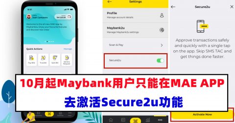 Maybank用户只能在MAE APP去激活Secure2u功能