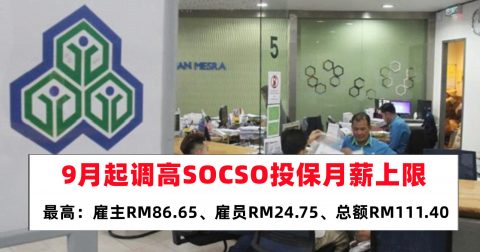 9月起调高投保月薪上限,每月须多缴约22令吉
