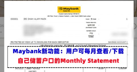 Maybank2u 新功能,用户可查看储蓄户口的月结单