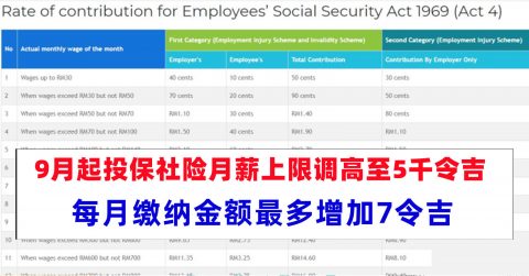 9月起投保SOCSO的月薪上限调高至5000令吉